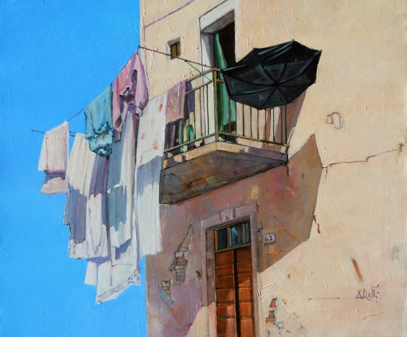 Terrazzo con panni stesi e ombrello (cm 50 x 60)