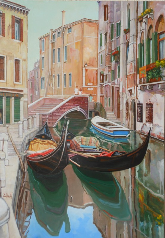 Un angolo di Venezia con due gondole (cm 70 x 100)